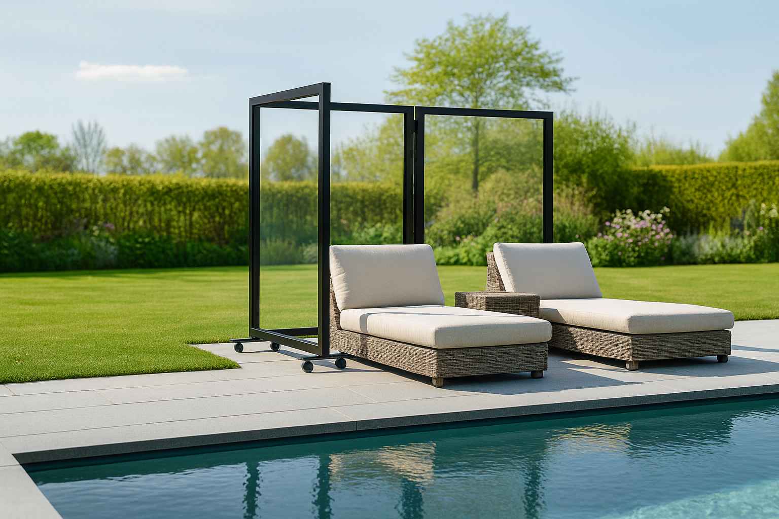 Für die meisten gängigen Terrassen bietet die Vierer-Windwand mit 1,40 × 1,80 m maximale Flexibilität und vielseitige Einsatzmöglichkeiten.